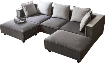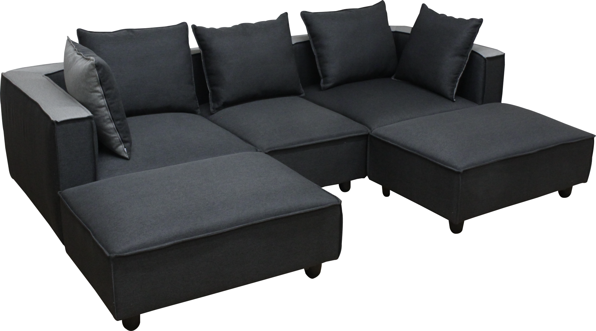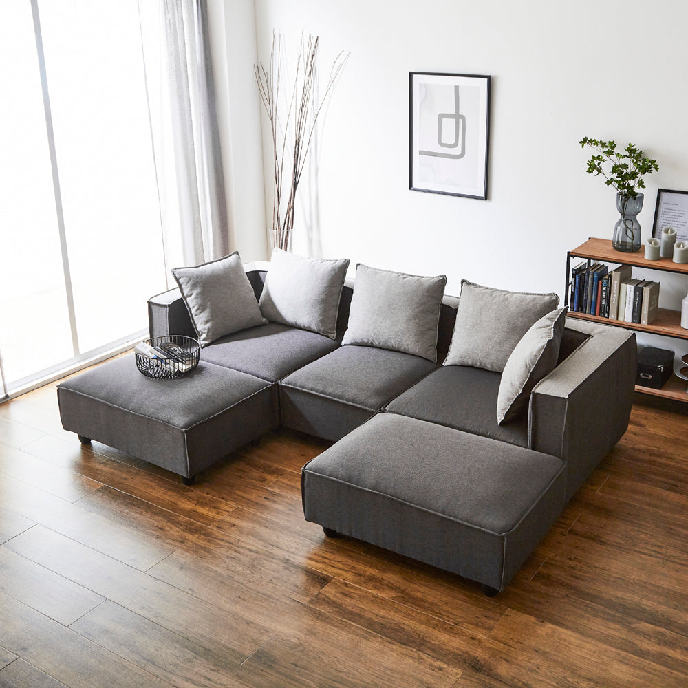 ゆったりとくつろげる、多機能ソファセットです。様々なシーンに合わせてレイアウト変更が可能です。肘付きソファ2脚と肘無しソファ1脚、そして便利なスツール2脚の充実したセット内容です。上質な素材と洗練されたデザインで、リビング空間をワンランクアップさせます。